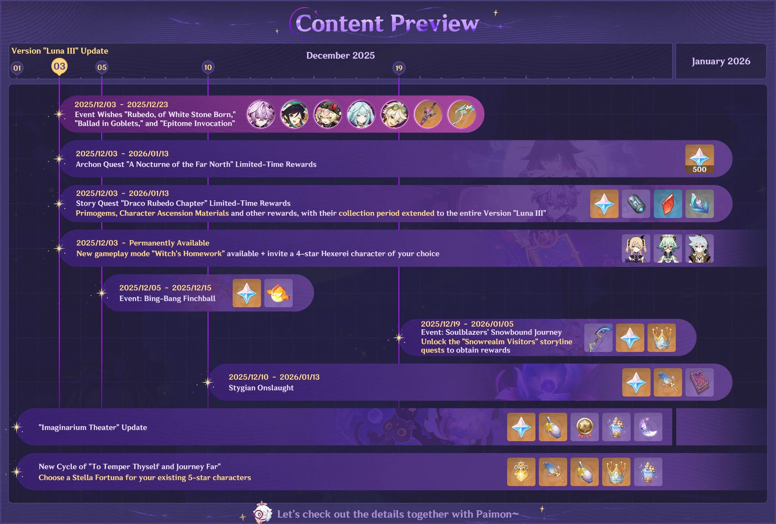 Hello, Traveler~ Version "Luna III" "A Nocturne of the Far North" is coming! Let's take a look at what kind of benefits and events will be in this new Version update~