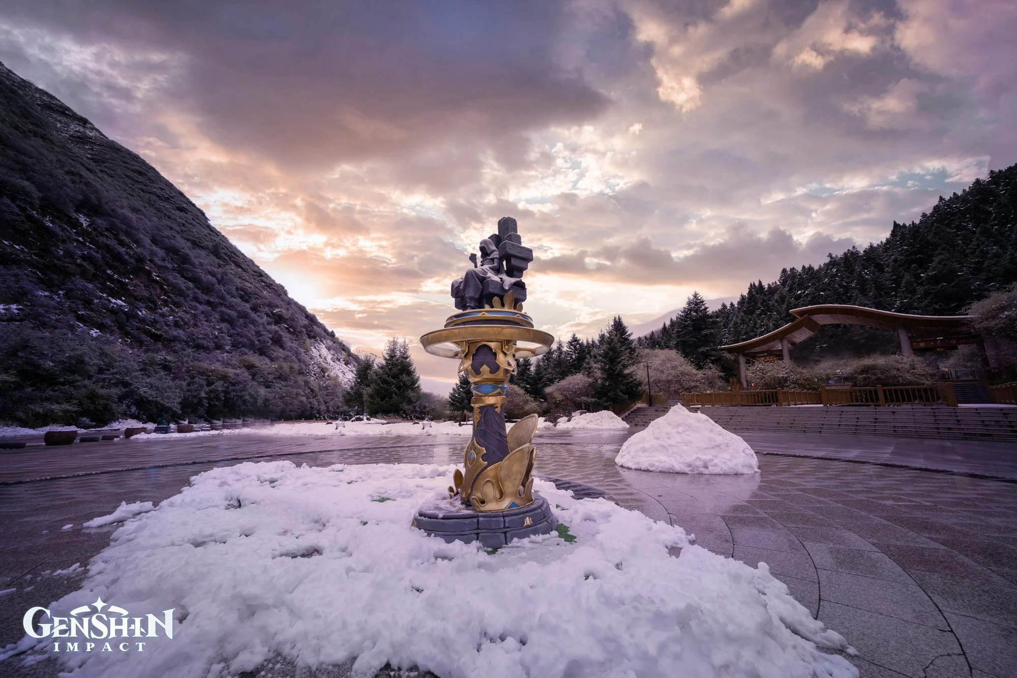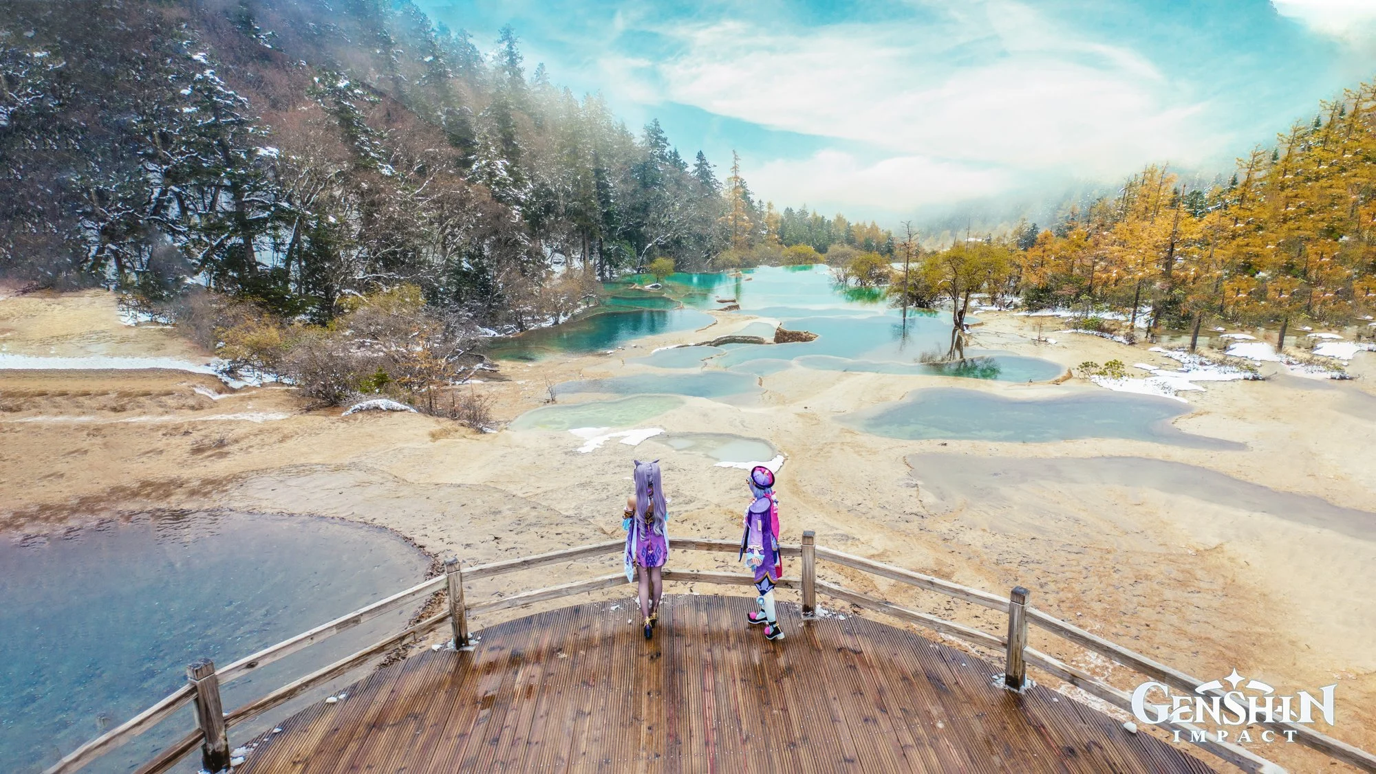 Are we in Sichuan or Teyvat!? A Geo Statue of The Seven, Geoculus, and Teleport Waypoint have appeared amongst these colorful limestone pools and waterfalls.