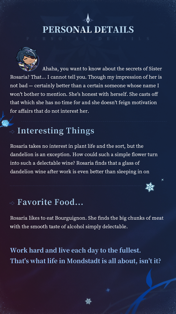 Today, let's get to know one of the sisters of Mondstadt's Church of Favonius — Rosaria!