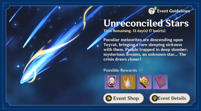 Peculiar meteorites are descending upon Teyvat, bringing a rare sleeping sickness with them. People trapped in deep slumber, mysterious dreams, an unknown star... The crisis draws closer!