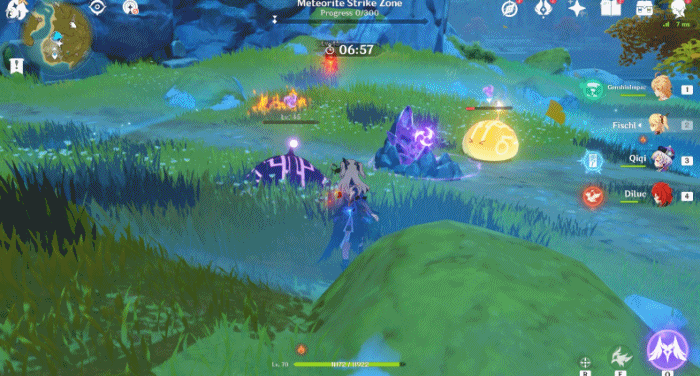 When you reach an affected area, the mini-map in the upper left corner of the screen will show the approximate locations of meteorite shards. The meteorite shards will resonate with a nearby character's Vision, causing the Vision to glow. The closer you draw to a shard, the brighter the glowing will become.