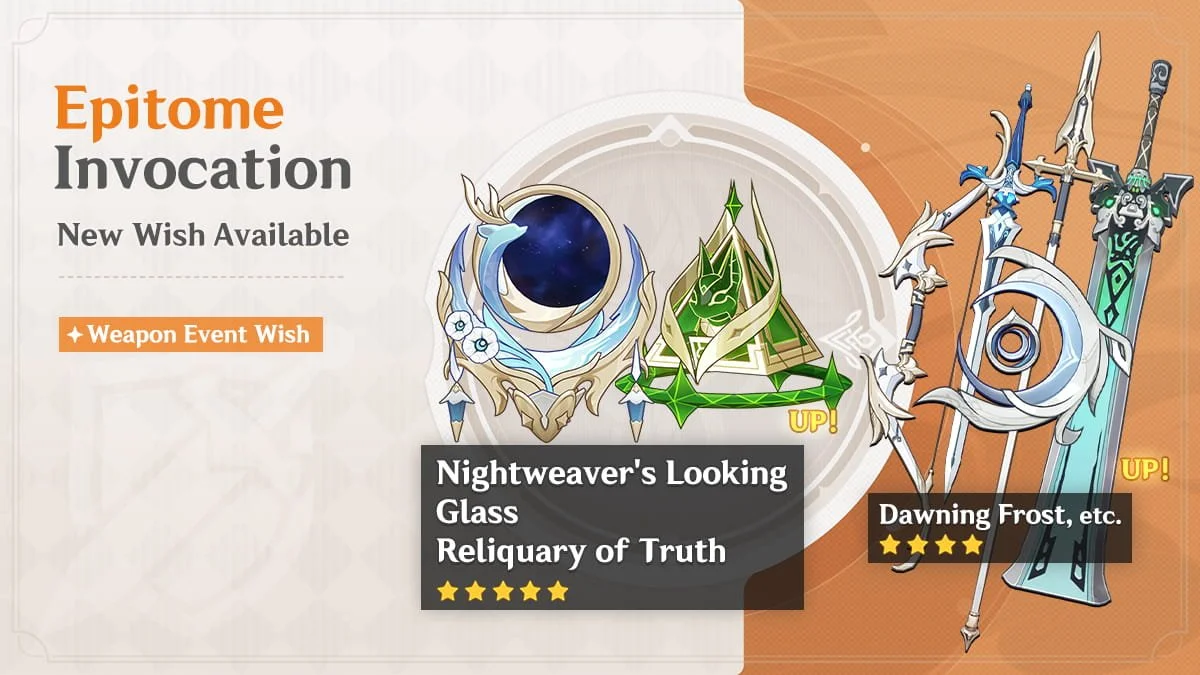 ● During this Event Wish, the event-exclusive 5-star weapons Nightweaver's Looking Glass (Catalyst) and Reliquary of Truth (Catalyst) will receive a huge drop-rate boost!