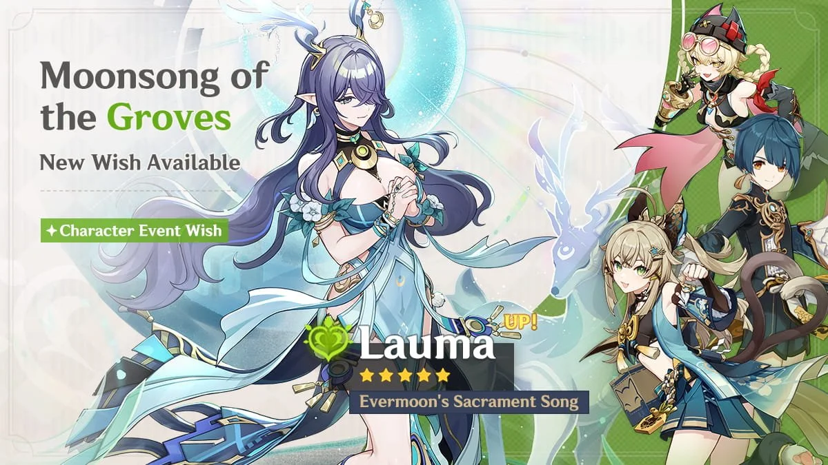 Event Wish "Moonsong of the Groves" - Boosted Drop Rate for "Evermoon's Sacrament Song" Lauma (Dendro)!