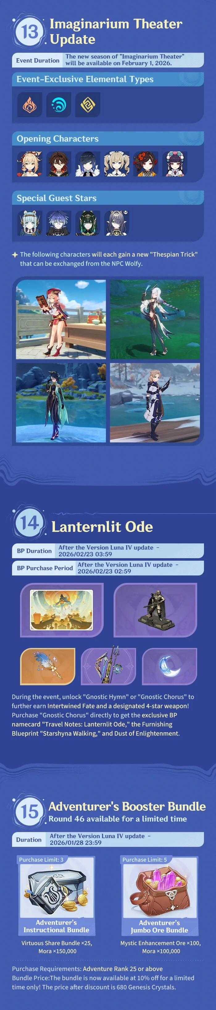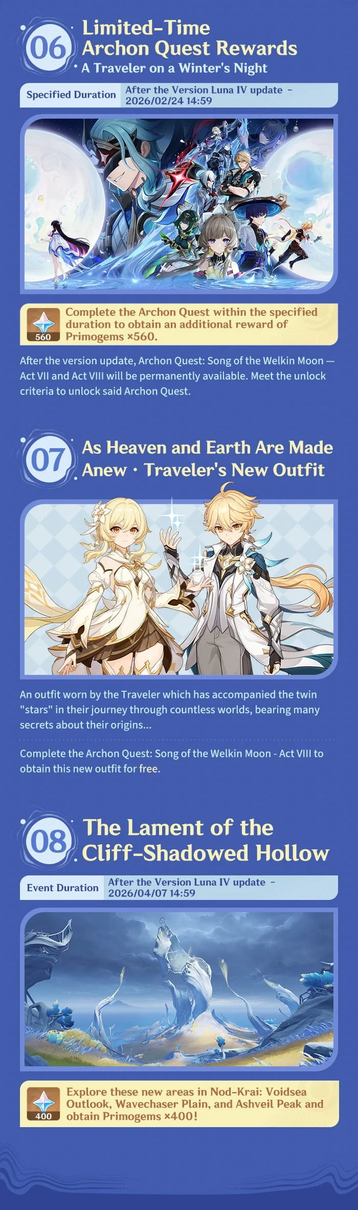 Hello, Traveler! Version Luna IV, "A Traveler on a Winter's Night," is coming your way soon! Let's see what you can look forward to in terms of benefits and events in this new version update!