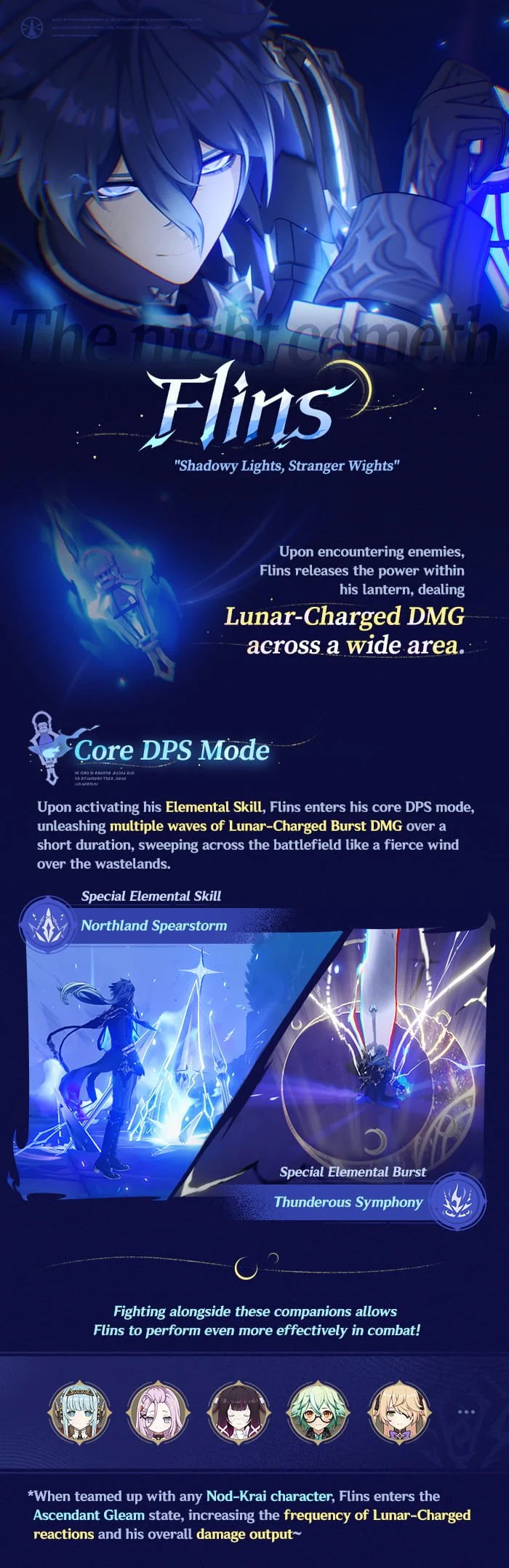 The Event Wish "The Lone Light Knocks at Night" will be available after the Version "Luna V" update on February 25. "Shadowy Lights, Stranger Wights" Flins (Electro) will receive a huge drop-rate boost!