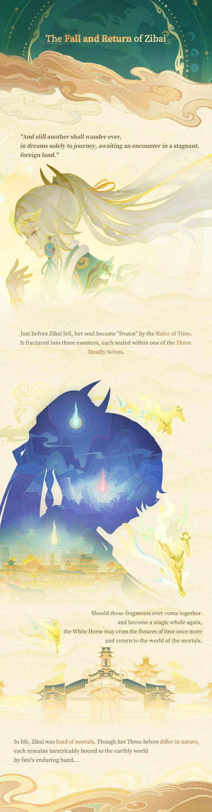 Hello, Traveler! With the "A Lanternlit Ode to the Silver Moon" story unfolding, many of you would have already crossed paths with the White Horse Adeptus. Before we take the next step to bring her back, let's take a moment to revisit what we know about Zibai and her Three Deadly Selves...