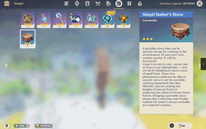 3) After creating a stove, the gadget will enter cooldown for 300 seconds. After the cooldown period is over, the Adepti Seeker's Stove will automatically disappear.