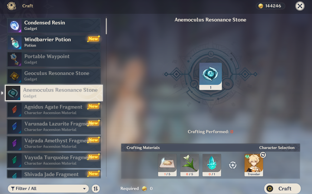 1) Reach Reputation Level 2 in Mondstadt to obtain the Anemoculus Resonance Stone crafting blueprint.