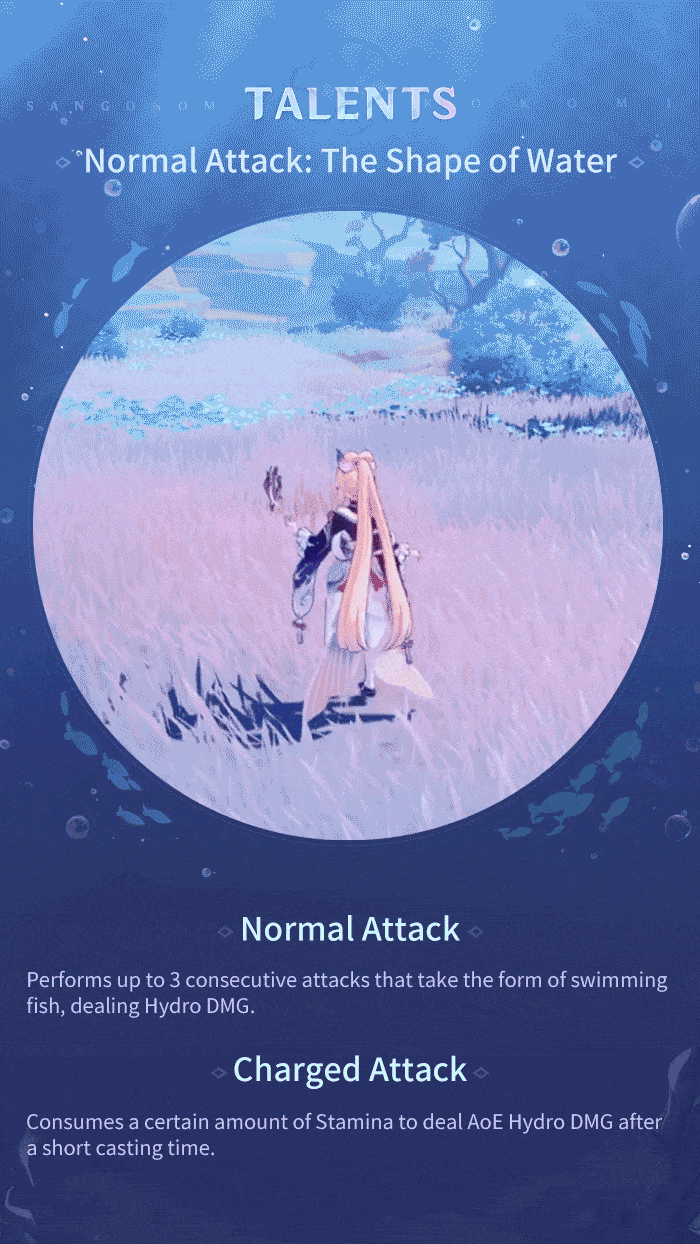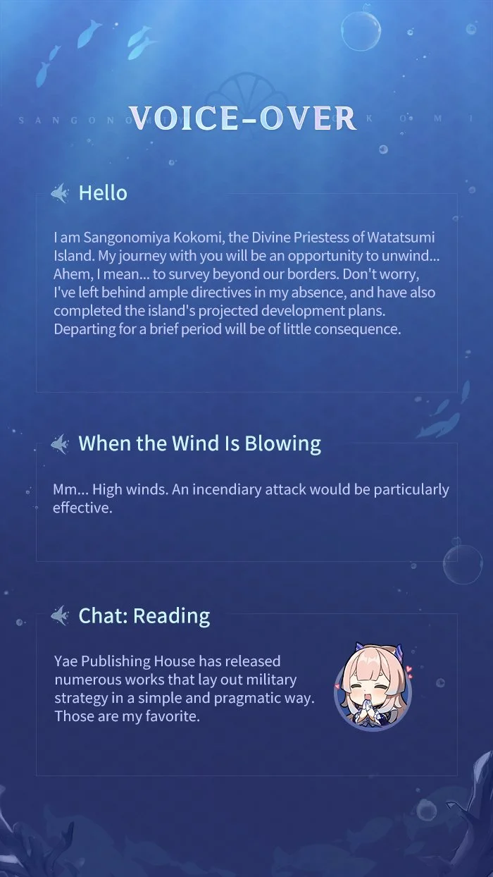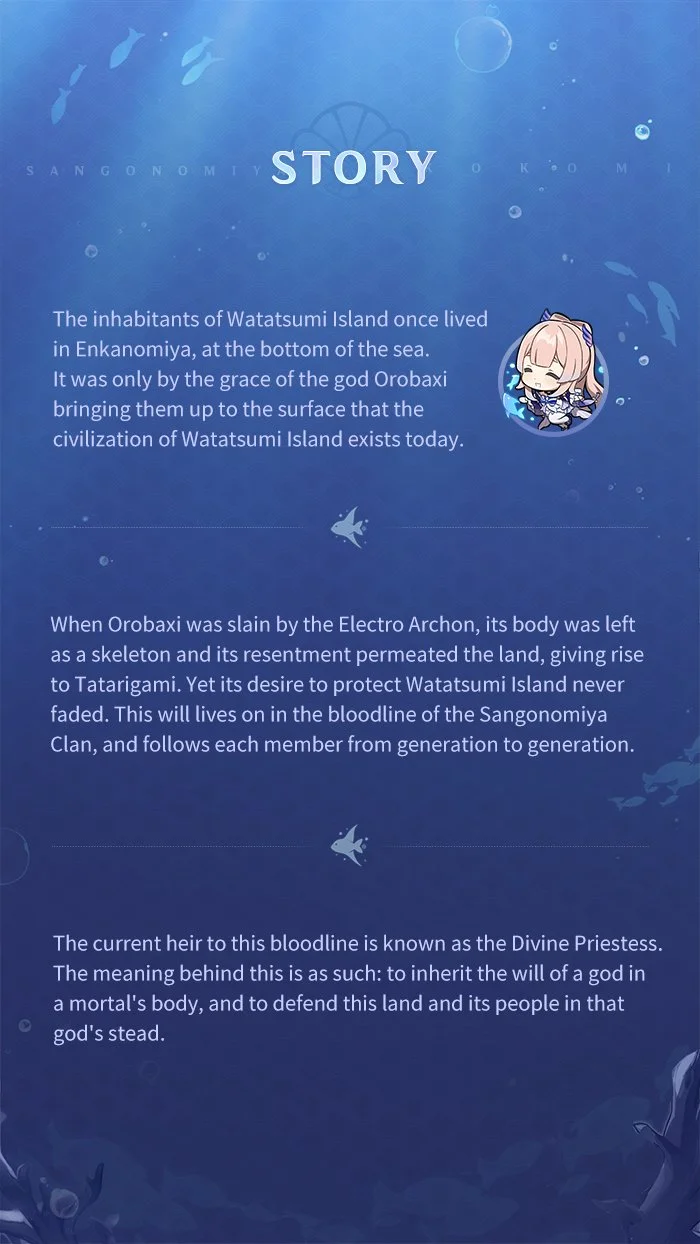 Hello Travelers~ Today, we'd like to introduce to you the Divine Priestess of Watatsumi Island — Sangonomiya Kokomi.