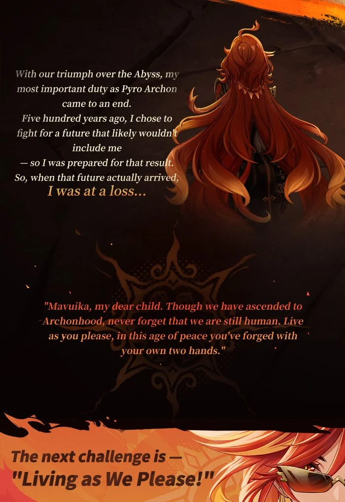 "Instead of confining themselves to the heavens, gods should broaden their horizons in the world below." | Notes on Mavuika