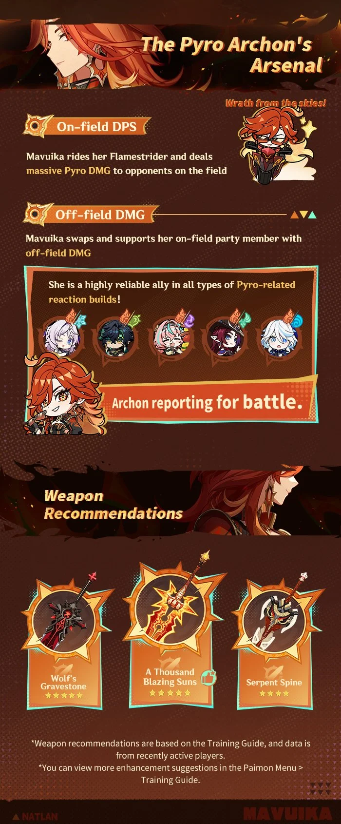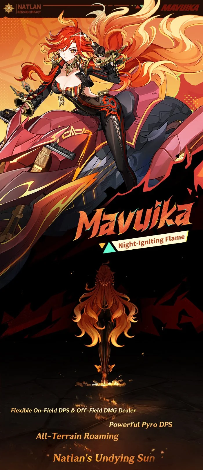 Hi there, Passenger. These are some remarks regarding the Pyro Archon Mavuika, the carrier of "Kiongozi," the brightest, most magnificent, and most radiant flame that has been revived! Together, let's have a look!