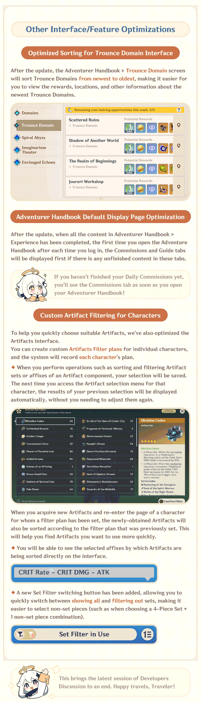 Hi, Traveler! The latest Developers Discussion is here~ Let's take a look at the adjustments and optimizations that this new version update has in store for us!