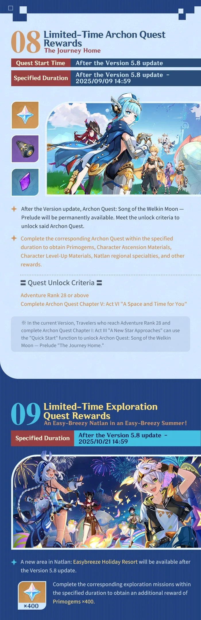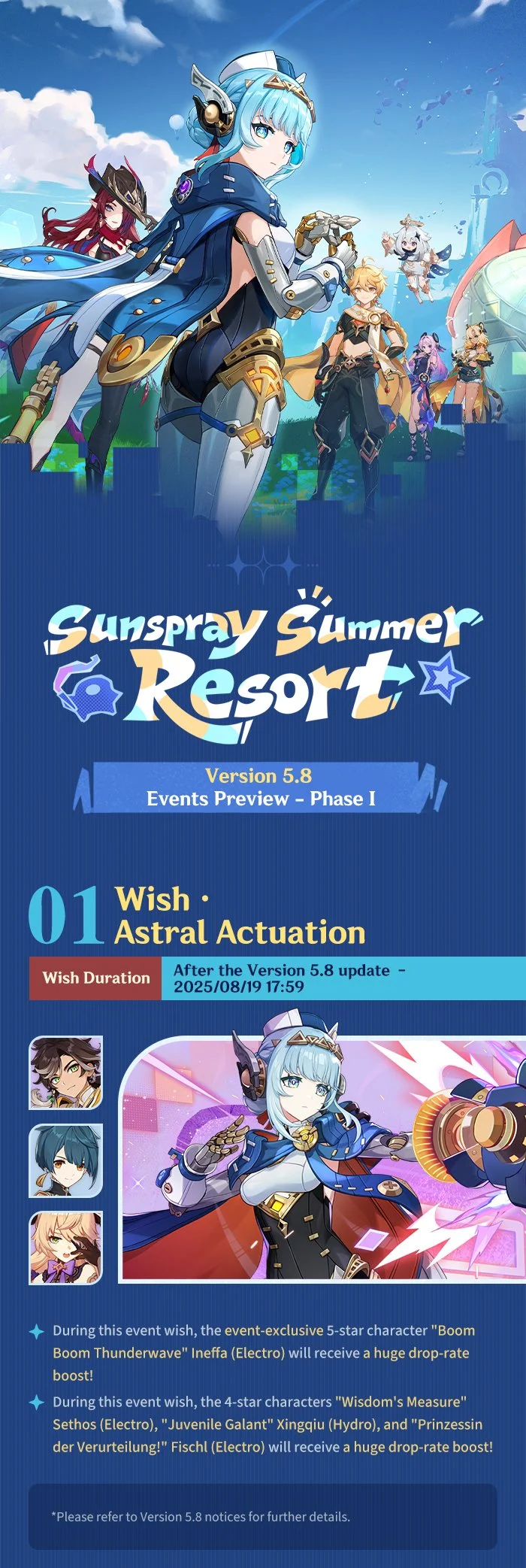Hello, Traveler~ Version 5.8 "Sunspray Summer Resort" is coming! Let's take a look at what kind of events will be in this new Version update~