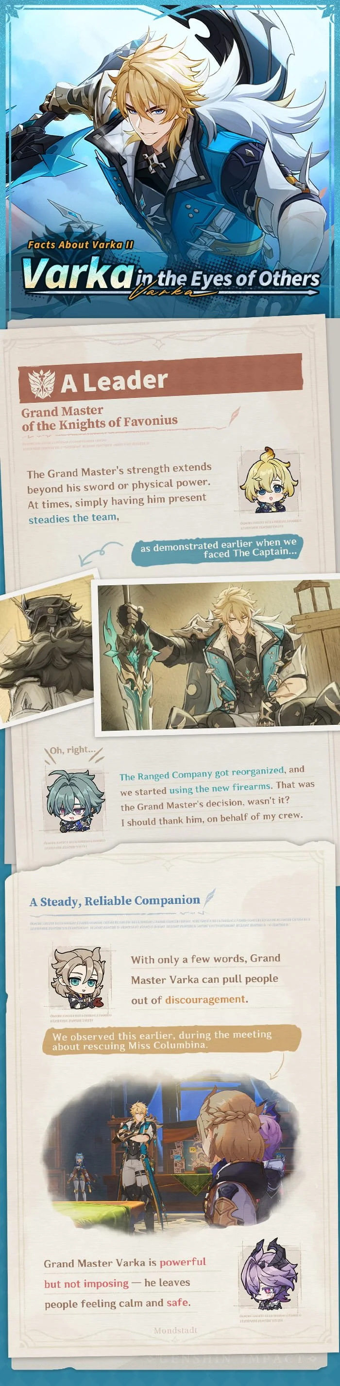 "The purpose of this book is to help readers understand the relevant facts about Varka, Grand Master of the Knights of Favonius."