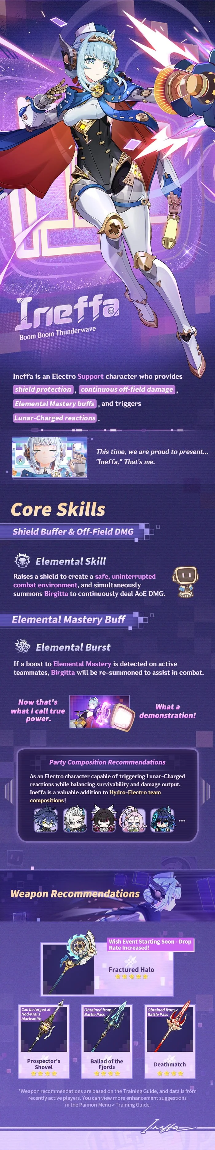 Hello, Traveler! The Character Event Wish "Astral Actuation" will be available on January 14 and "Boom Boom Thunderwave" Ineffa (Electro) will receive a huge drop-rate boost!