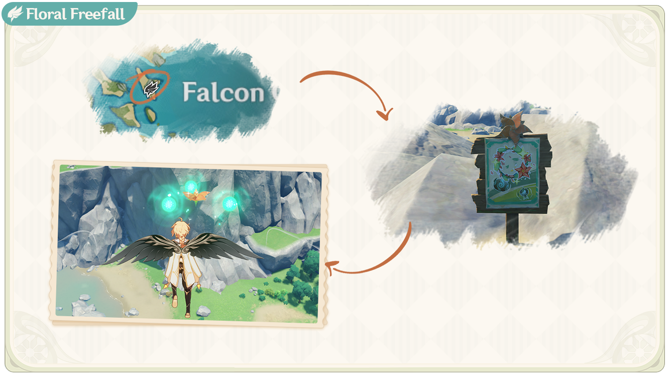 During the Windblume Festival, Travelers can follow the instructions on the event page to look for Floral Freefall event billboards.