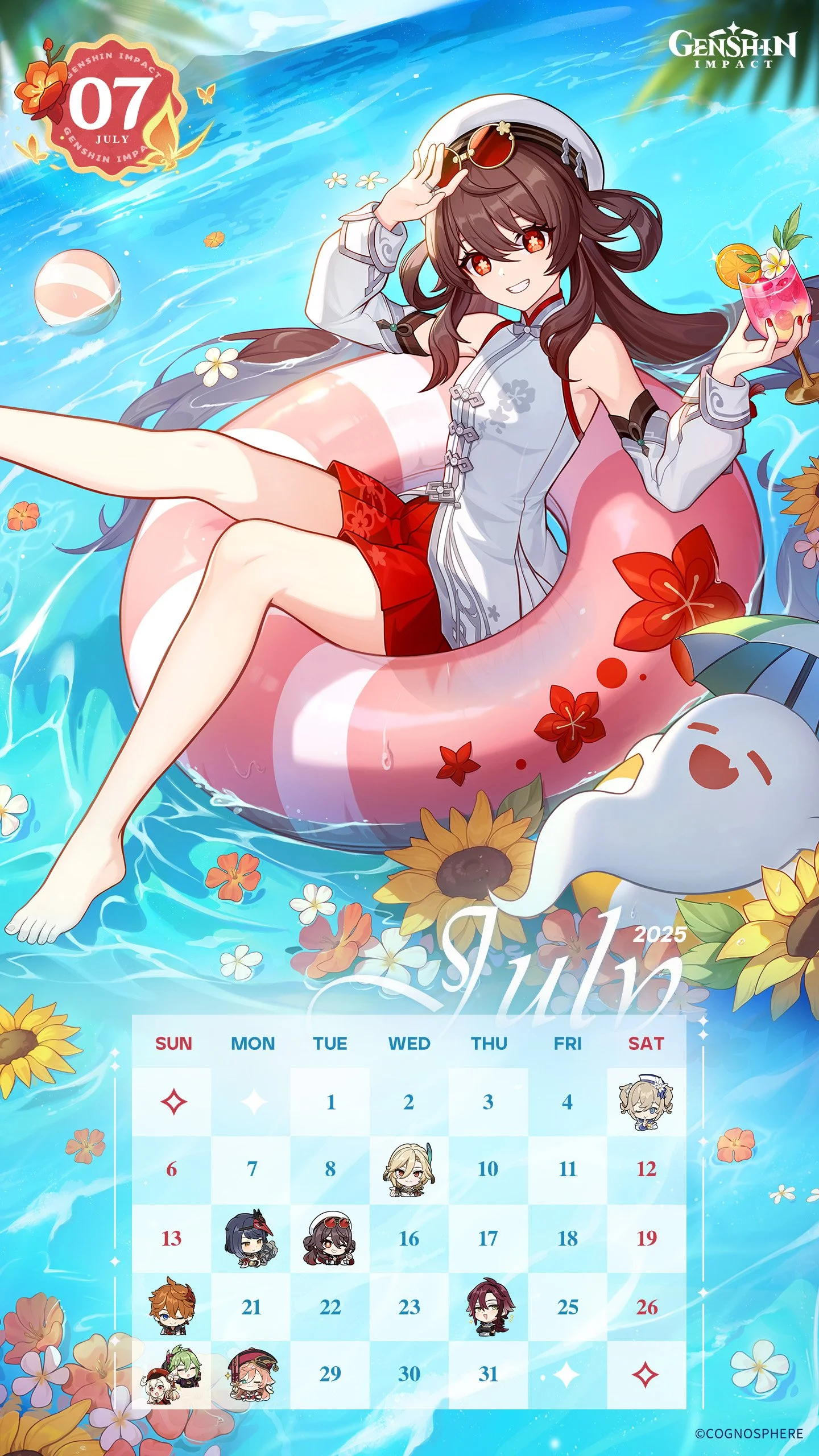 Share this post with the hashtag #GenshinImpactCalendar and send well-wishes to the birthday characters in July.
