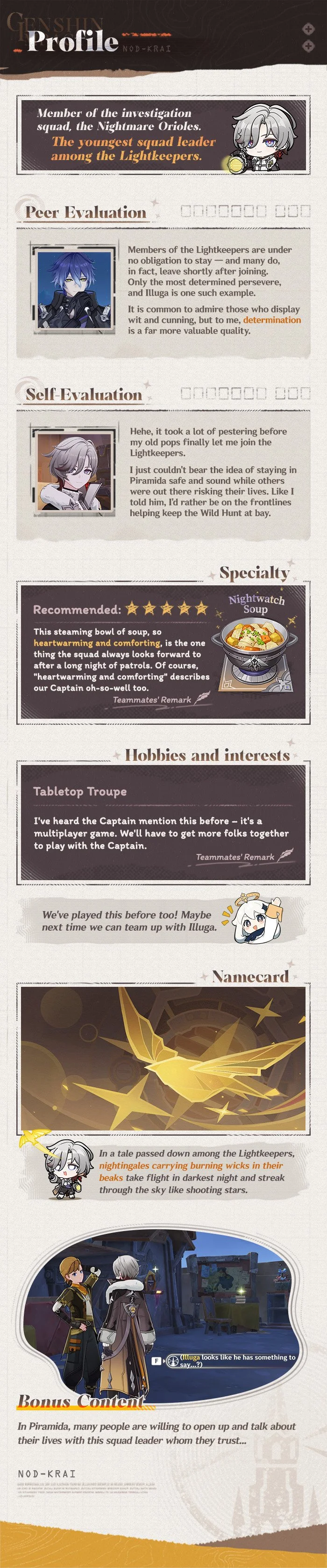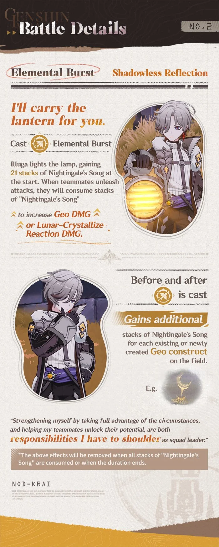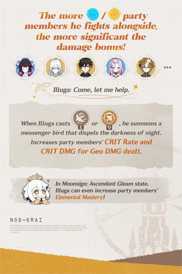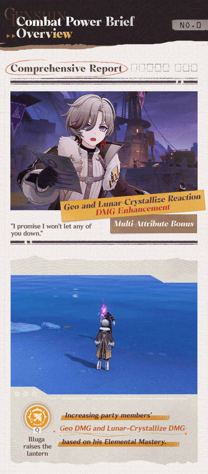 In your previous adventures, you might have heard Flins and Varka mention a name: Illuga. He is the youngest squad leader among the Lightkeepers, capable of providing damage bonuses for Lunar-Crystallize reactions during combat. Let's take a closer look at the details!