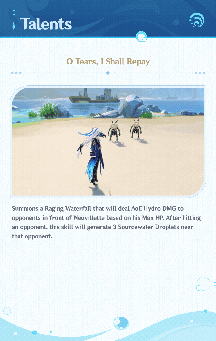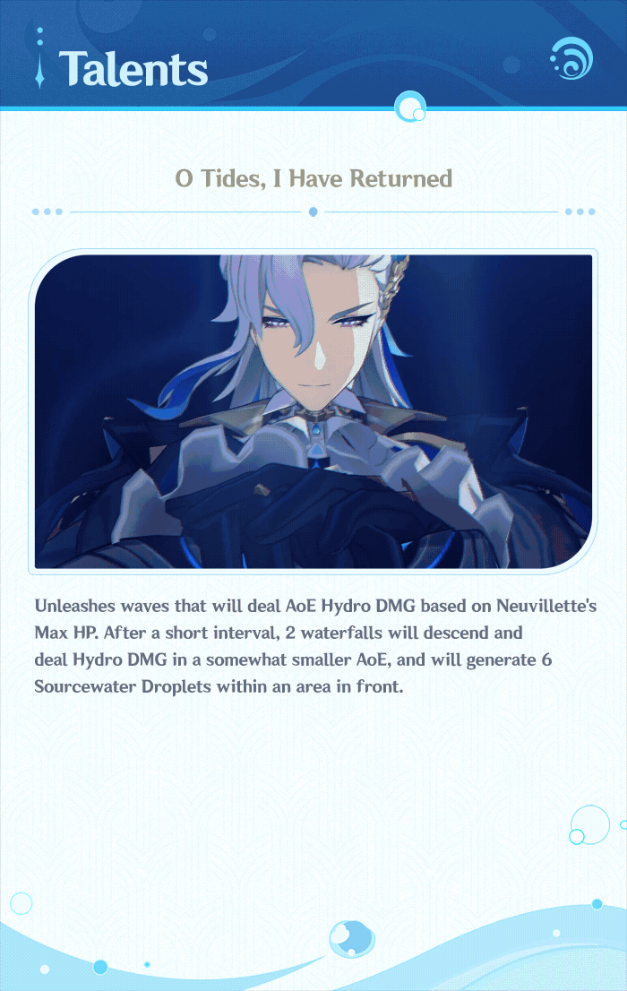 Hello, Travelers~ Today, we will be introducing a new character, Neuvillette!