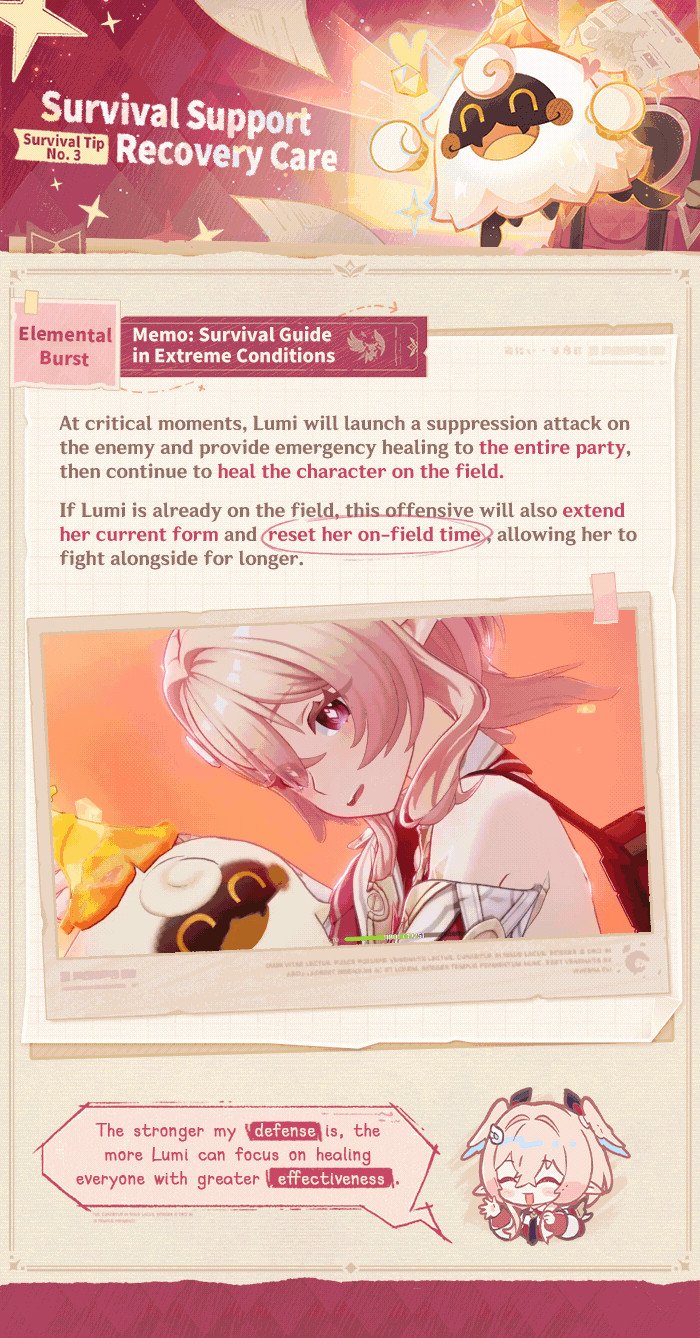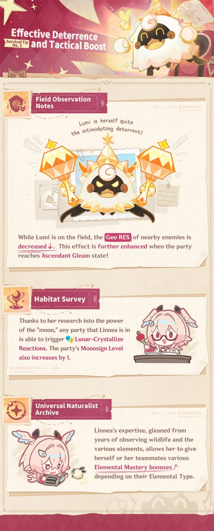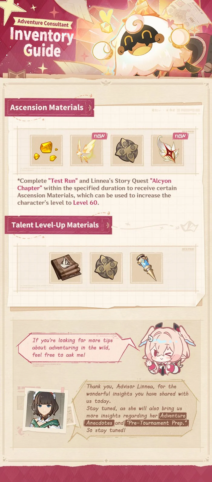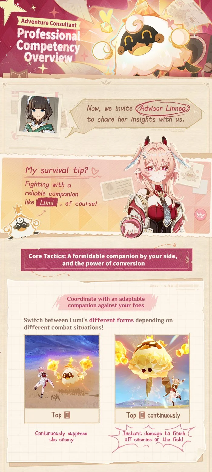 Hello, Traveler! Today, we have with us Linnea, advisor at the Adventurers' Guild. She will share with us some survival tactics you can rely on, drawn from her experience in various dangerous situations. Let's see what she has to say!