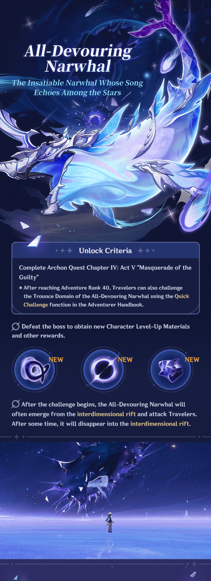 After the Version 4.2 update, Travelers will encounter a new enemy All-Devouring Narwhal. Let's check out what special traits it has and how to deal with it~