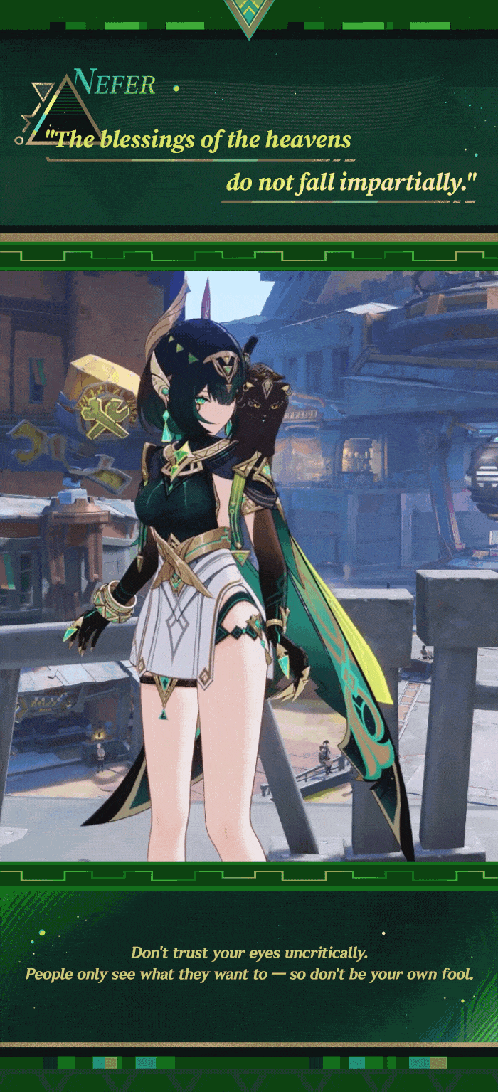 Hello, Travelers! Today, we'll be introducing you to the remarkably resourceful owner of the Curatorium of Secrets, Nefer. Let's get to know her!