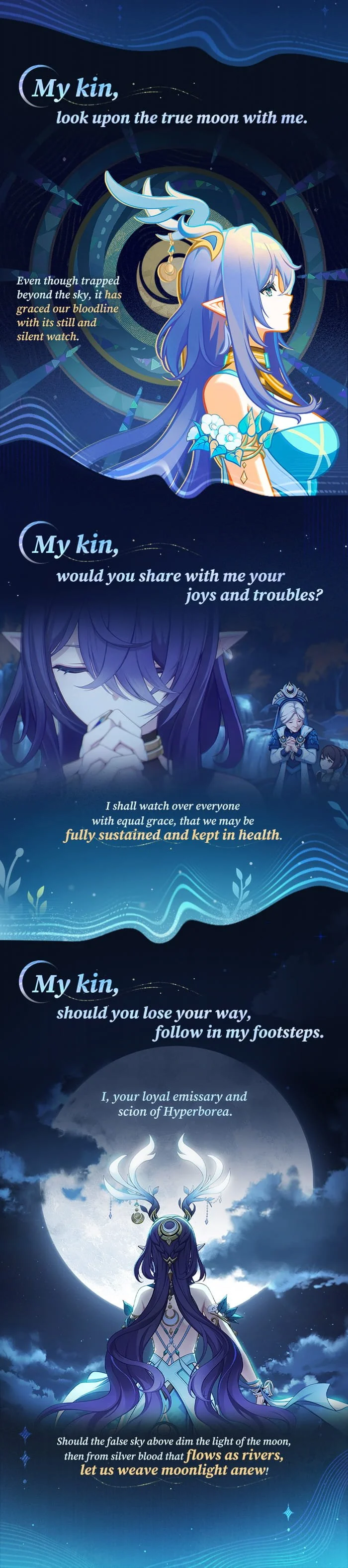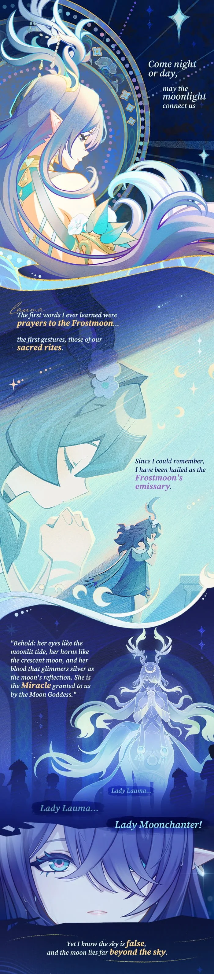 The Moonchanter of the Frostmoon Scions always pursues the True Moon and practices the way of protection with gentle yet unwavering resolve.