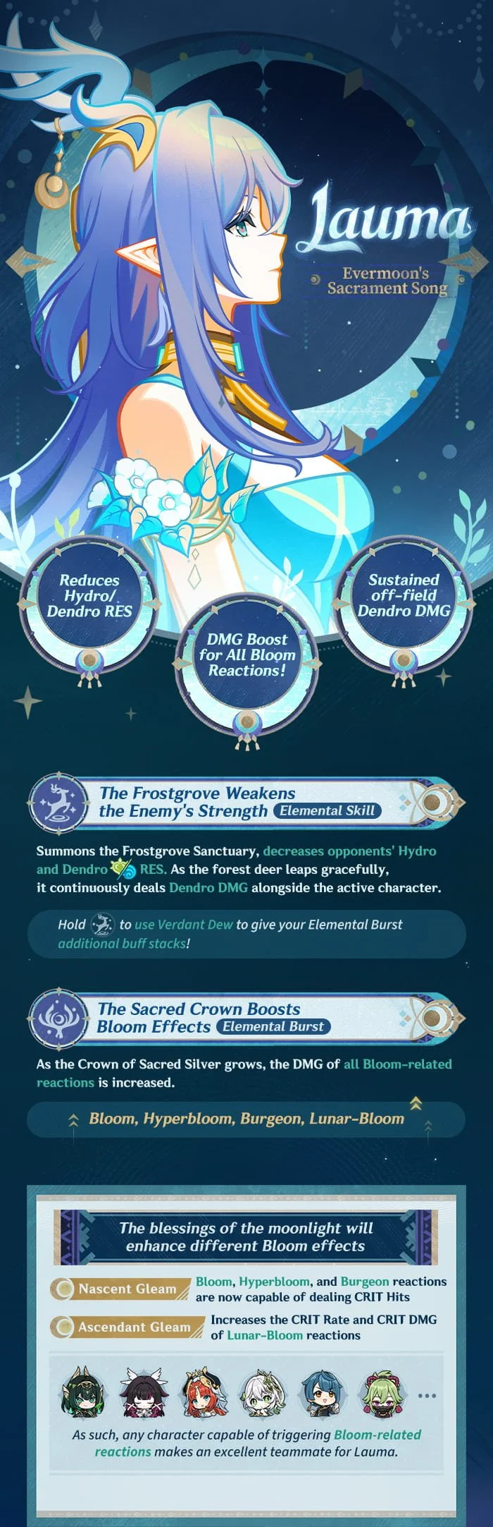The Event Wish "Moonsong of the Groves" will be available from April 28 at 18:00 (server time). During this period, the event-exclusive 5-star character "Evermoon's Sacrament Song" Lauma (Dendro) will receive a huge drop-rate boost!