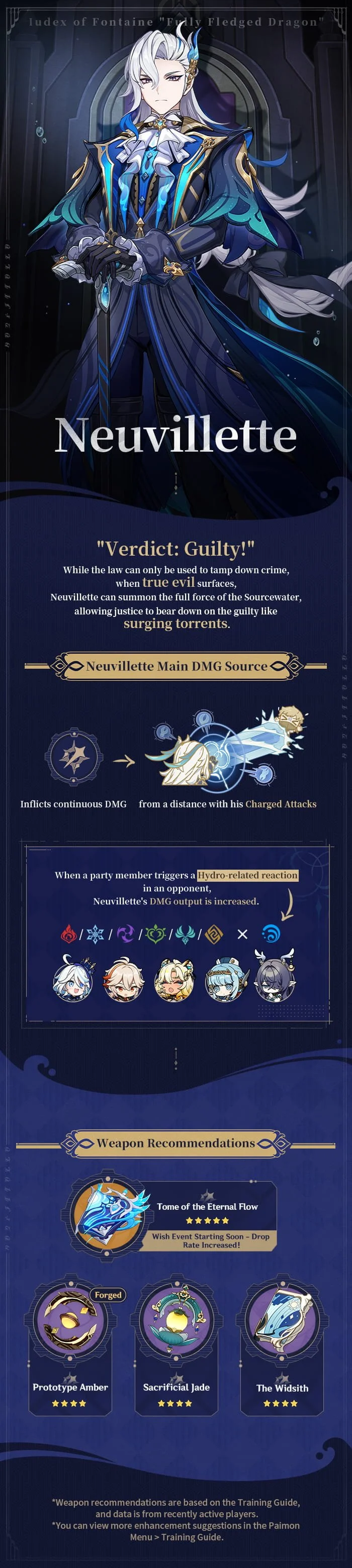 The Event Wish "Decree of the Deeps" will be available from February 3, at 18:00 (Server Time), with a huge drop rate boost for "Ordainer of Inexorable Judgment" Neuvillette (Hydro)!