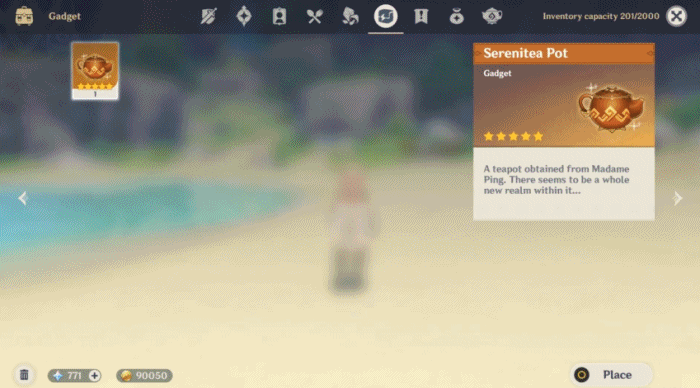 To enter the Serenitea Pot, you will need to first go to Inventory > Gadgets and select it to place it. After placing the Serenitea Pot, select Enter the Serenitea Pot and you will find yourself in the realm within. After entering the Serenitea Pot, the game will enter into Co-Op Mode. (Friends in the Serenitea Pot are unable to receive Domain Team Invites~)