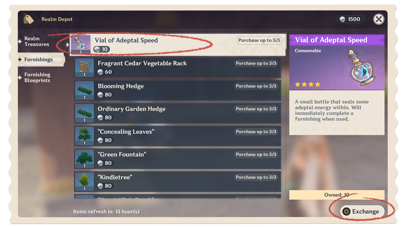 Other than Guest Assistance, you may also use a Vial of Adeptal Speed to immediately obtain the furnishing currently being crafted. You can exchange for the Vial of Adeptal Speed at the Realm Depot.