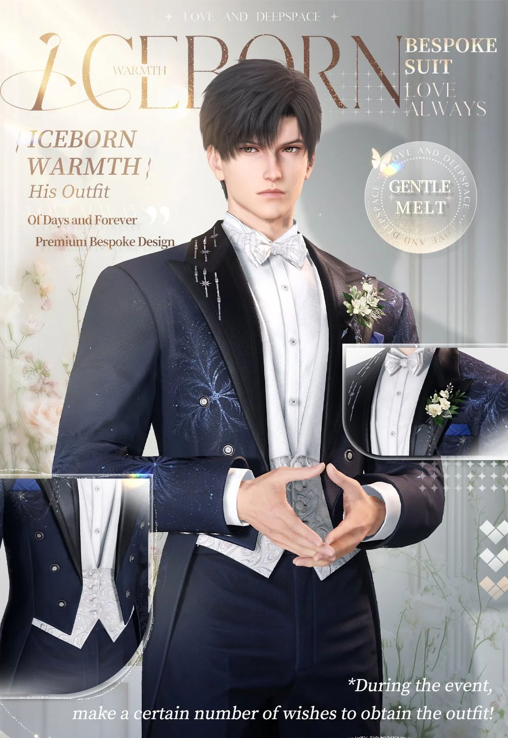 Participate in the [Witnessed by Deepspace] Wish Event. Make cumulative Wishes and enhance event Memory to obtain His event-themed outfit.