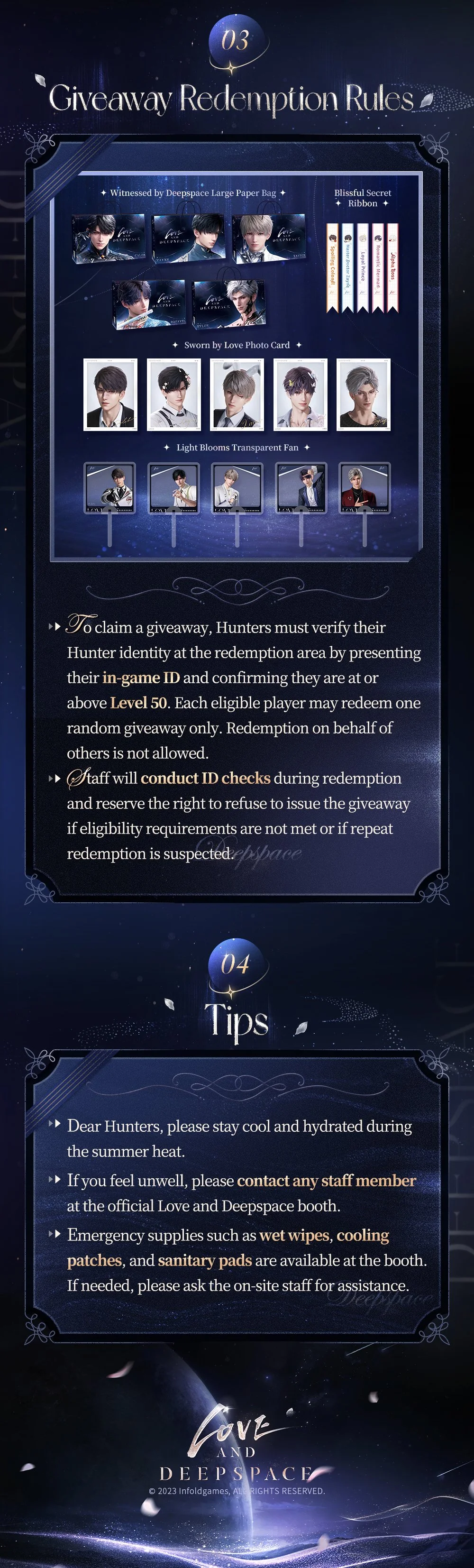 Follow @Love_Deepspace and Repost for a chance to win a random Love Interest's [Love and Deepspace AX2025 Giveaway Pack]! On July 14, we'll randomly select 10 Hunters to receive this pack.