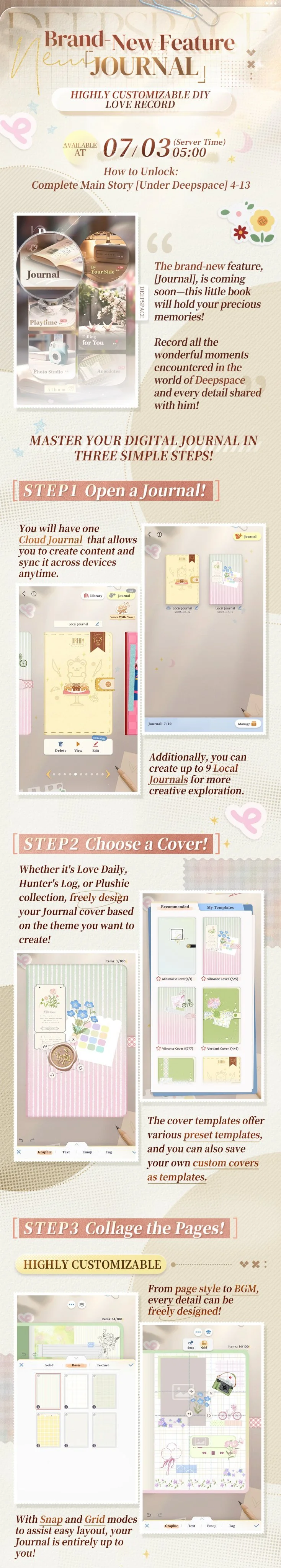 Capture every wonderful encounter in Deepspace and every heartbeat shared with him in your Journal!