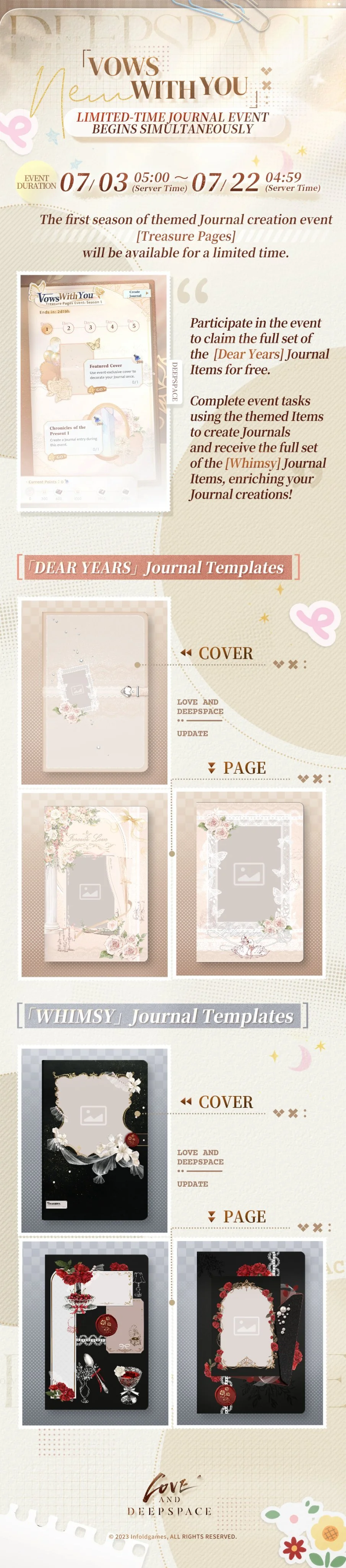 Enter the event and claim all [Dear Years] series journal items. Complete the event tasks by using themed items to decorate your Journal and get all [Whimsy] series journal items!