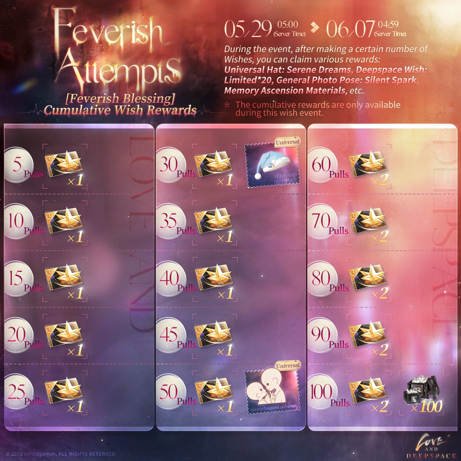 Love and Deepspace | [Feverish Attempts] Cumulative Wish Rewards