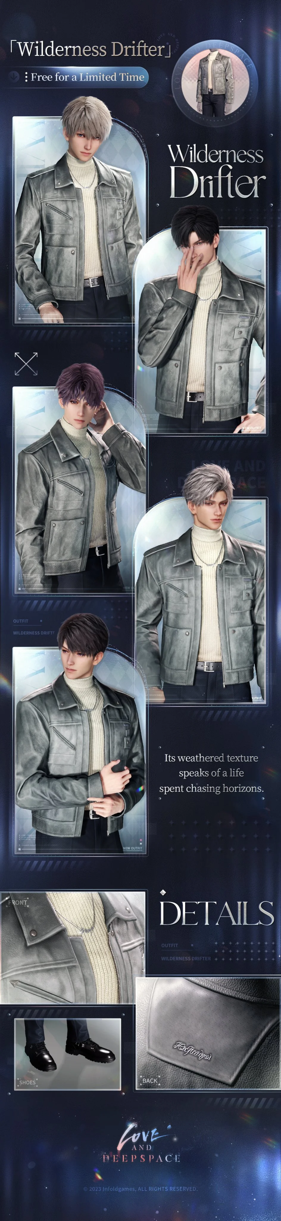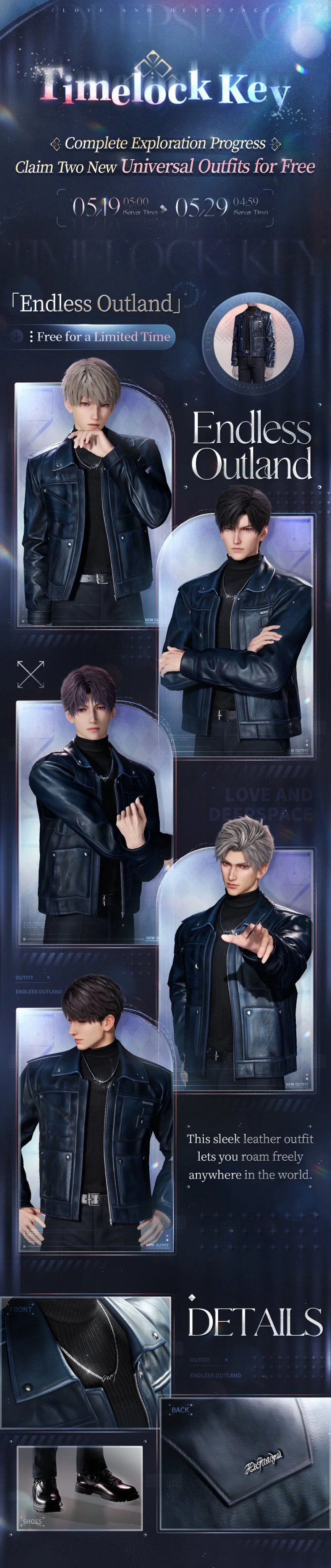 Complete the full exploration progress to claim [Diamond*1,000], His Universal Outfits [Endless Outland] and [Wilderness Drifter], and upgrading materials!