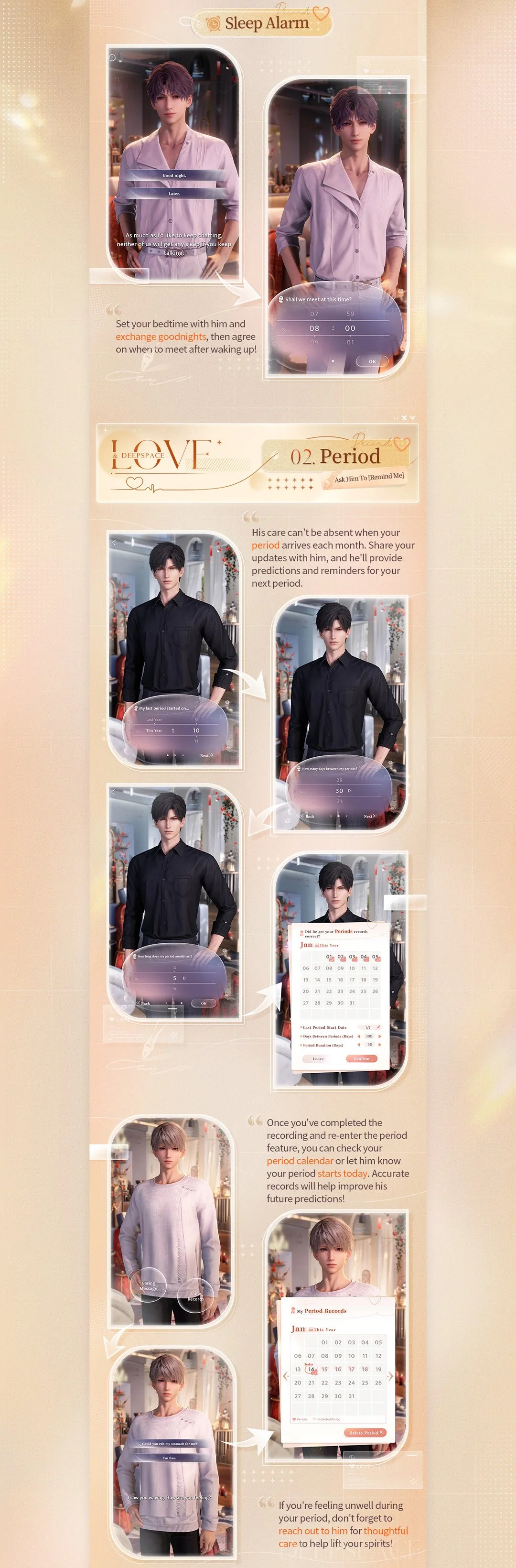 You can have him help you keep track of your menstrual period, and he'll send thoughtful reminders and heartfelt care when your period arrives.