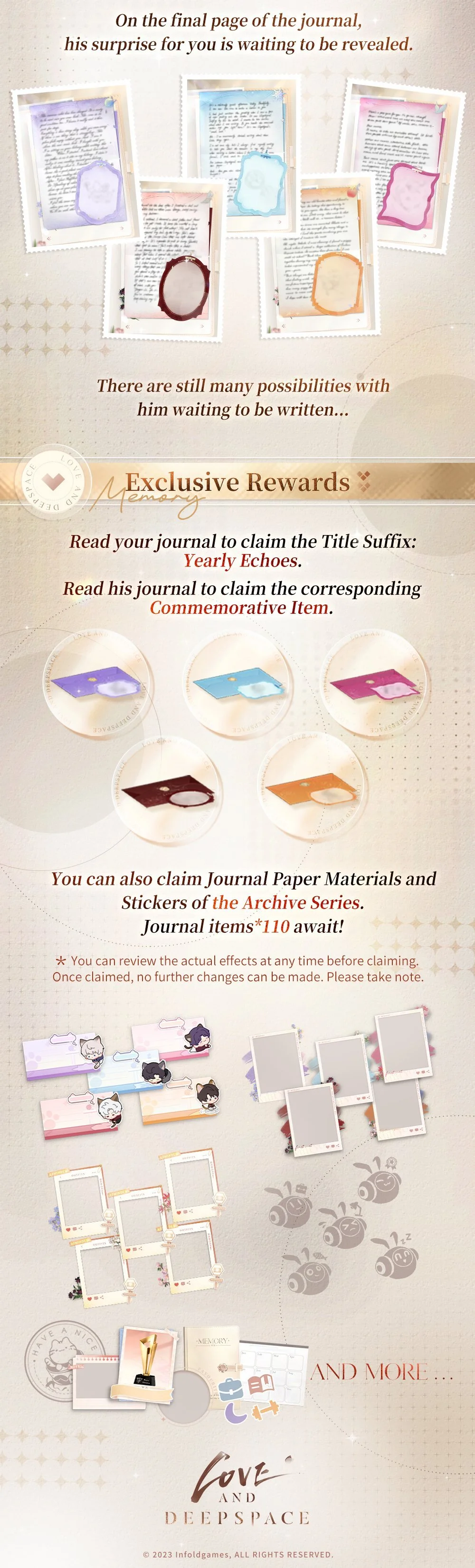 You can also claim Journal Paper Materials and Stickers of the [Archive Series]. Journal items*110 await!