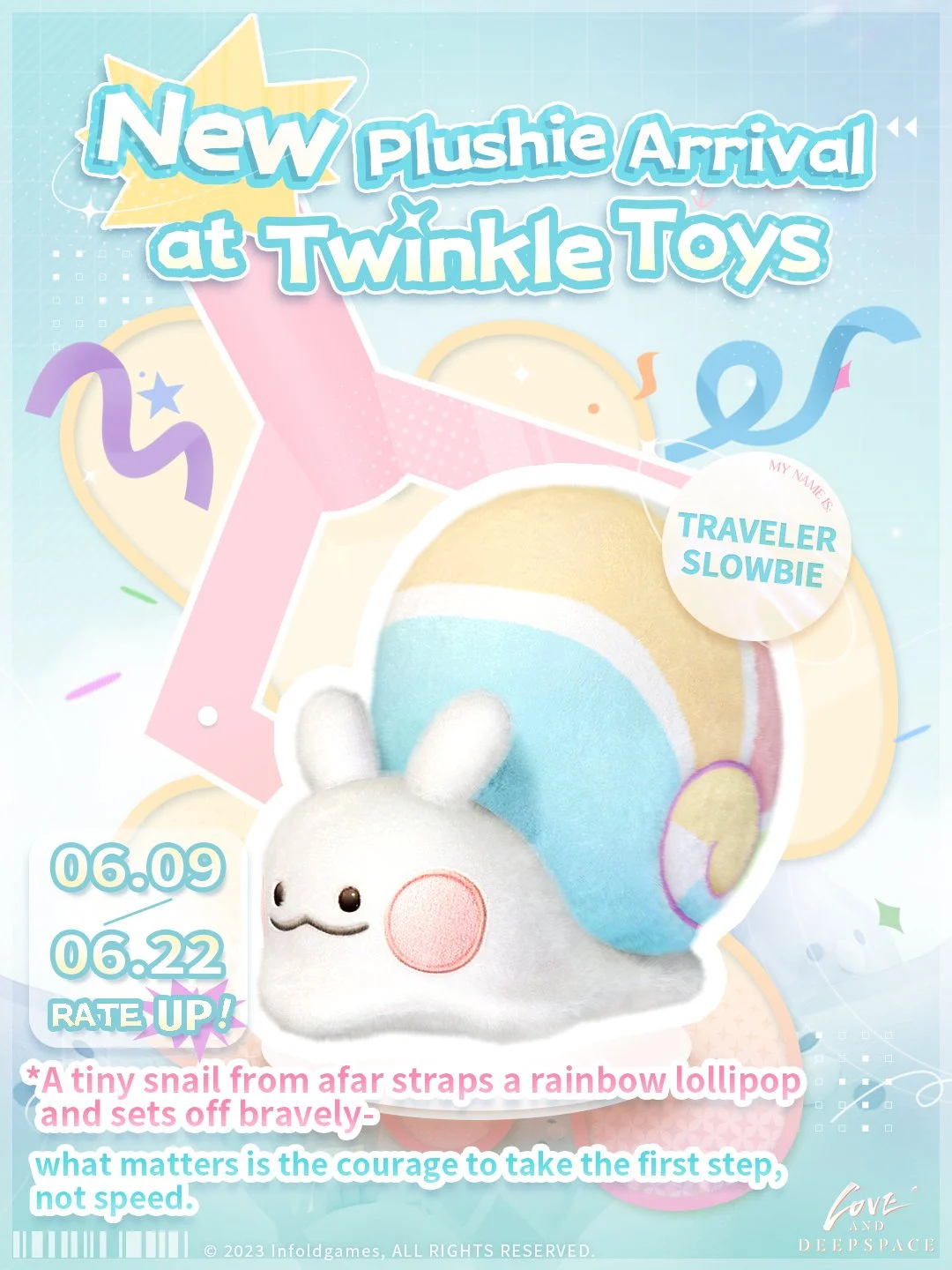 From Jun. 9 to Jun. 22, the chance to see Traveler Slowbie in the two-prong claw machine will go up.