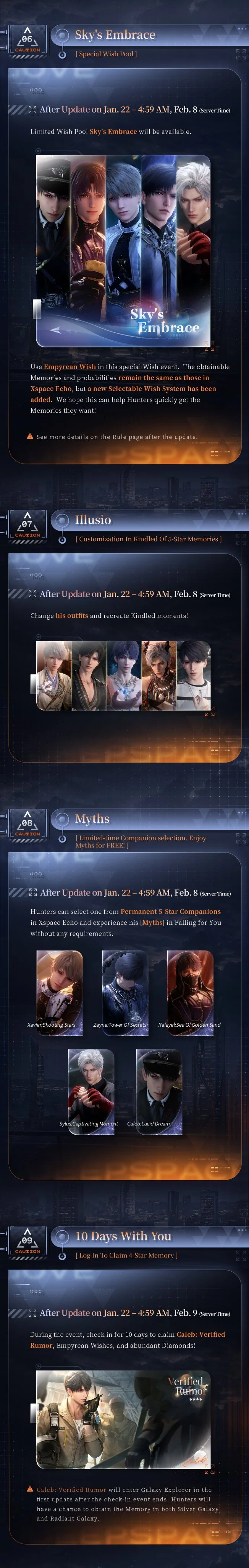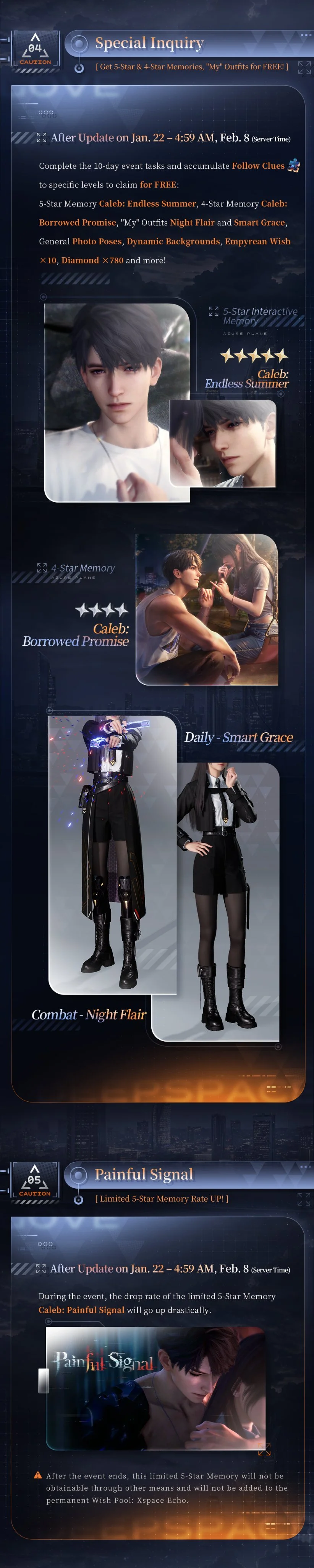 Free 4-Star Memories [Xavier: Twofold Heartbeat], [Zayne: Cherished Longing], [Rafayel: Love's Silhouette], [Sylus: Ordinary Traces] and [Caleb: Intertwined Gold]