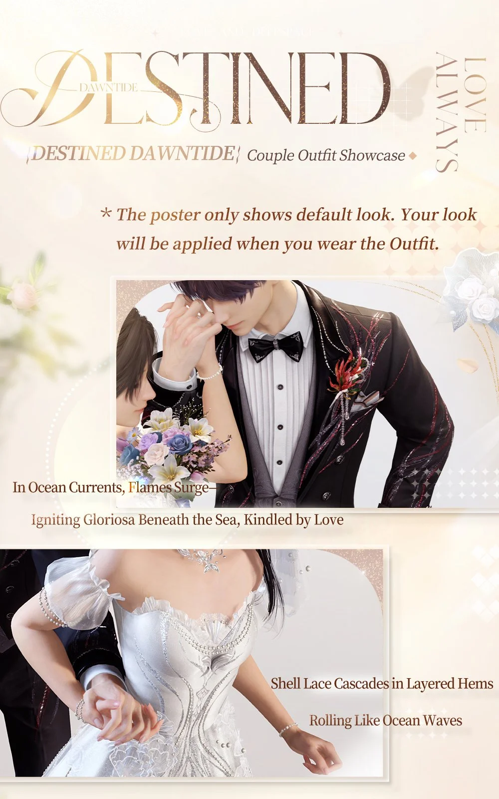 ↓ Tap the poster to view in-game demonstration of the Outfits, Accessories, and Ring! Actual effects may vary in-game.