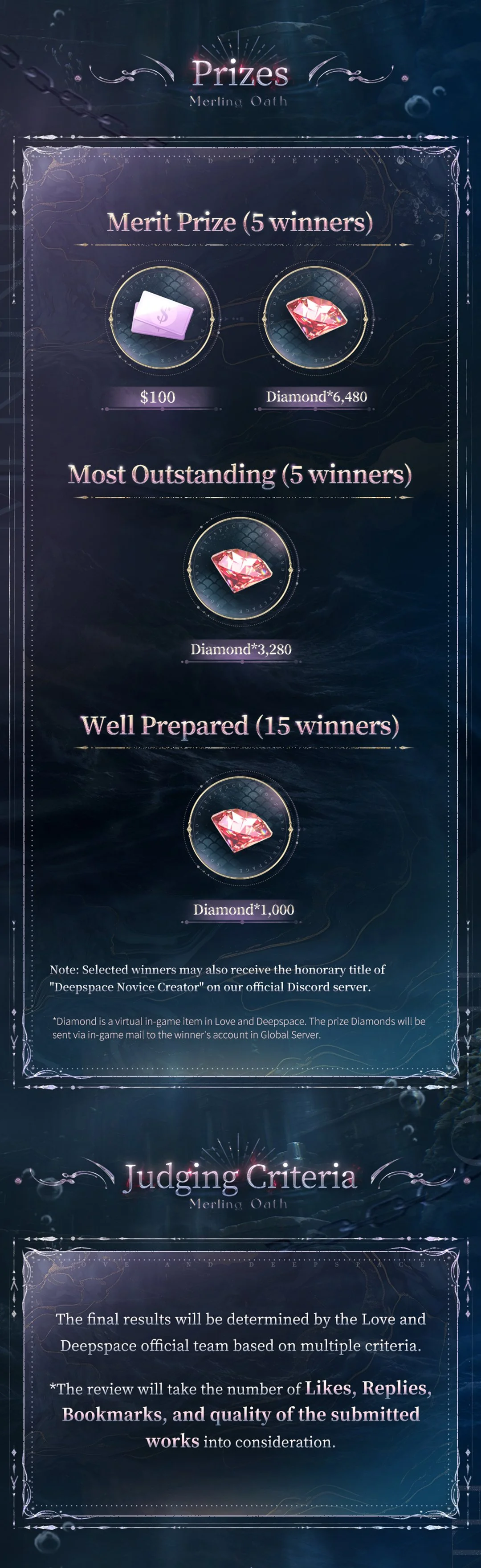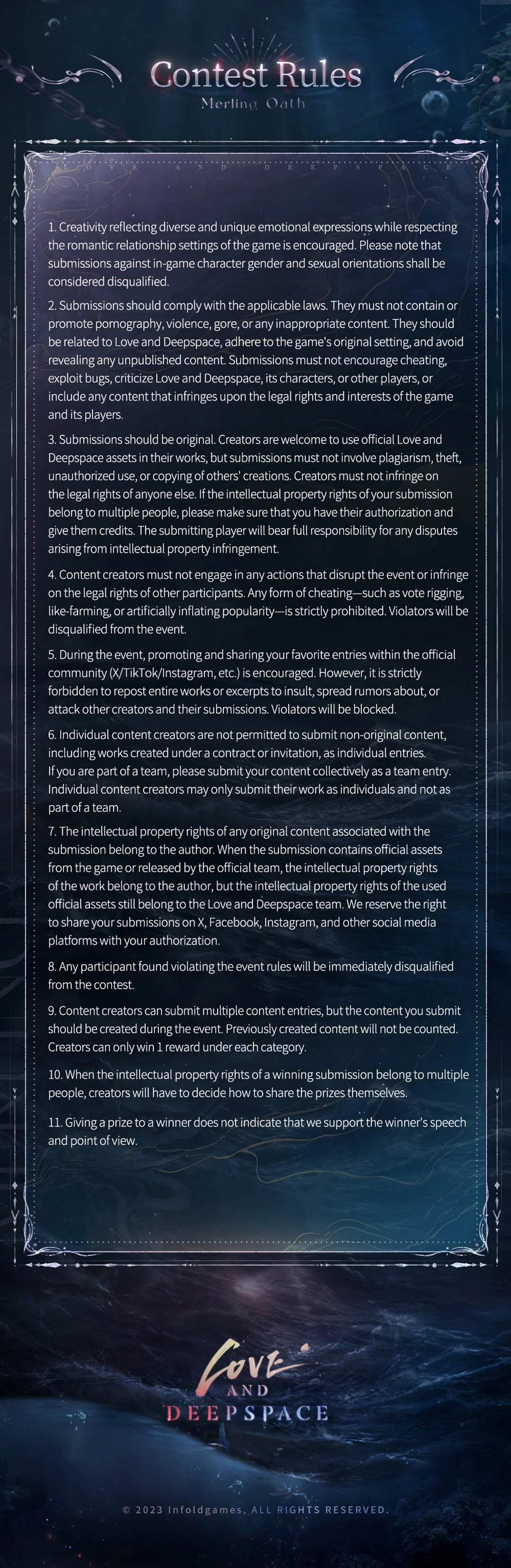 During the event, post your original artwork with both the hashtags #LoveandDeepspace and #RafayelLemurianSeaGod on X/TikTok/Instagram, and complete the submission form as required.