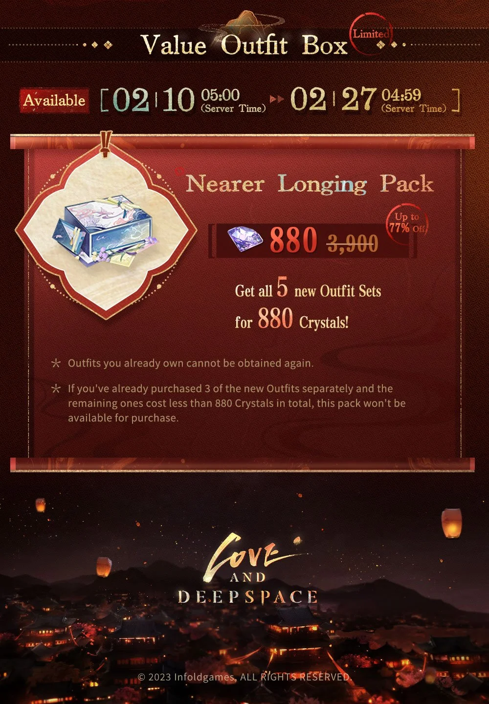 Outfit Pack [Nearer Longing Pack] is available with a limited 77% off!