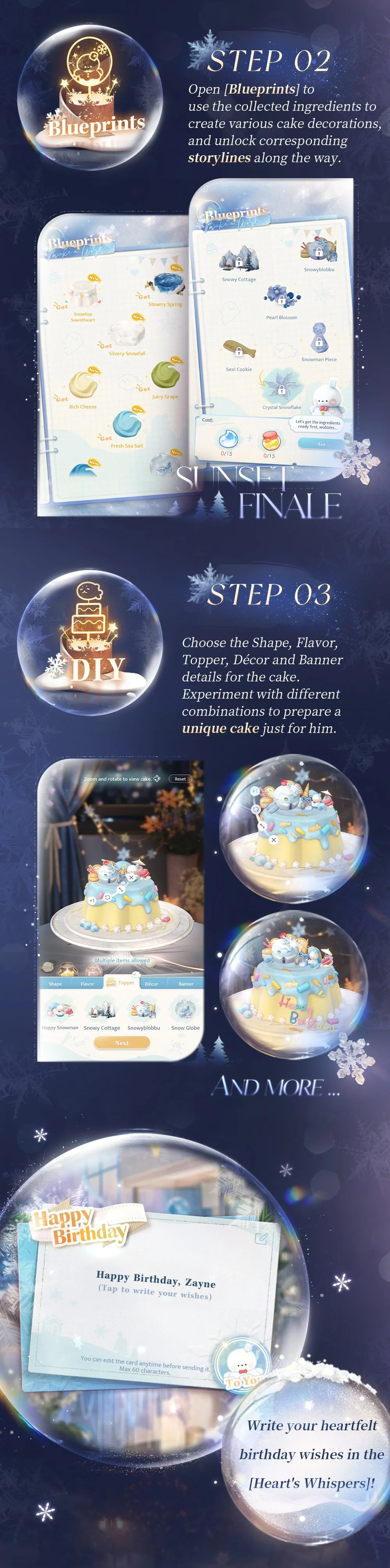 On his birthday, present him with the [cake] and [card] you made, and unlock the [birthday wish interactive story].
