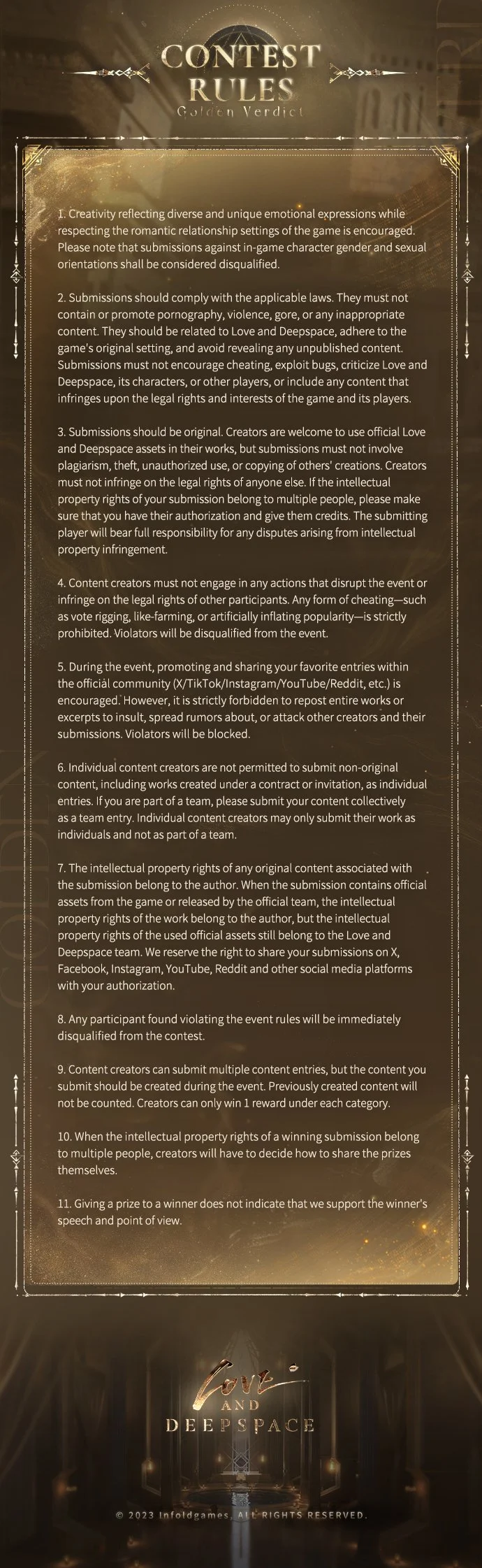 During the event, post your original artwork with both the hashtags #LoveandDeepspace and #ZayneGodofAnnihilation on X/TikTok/Instagram/YouTube/Reddit, and complete the submission form as required.