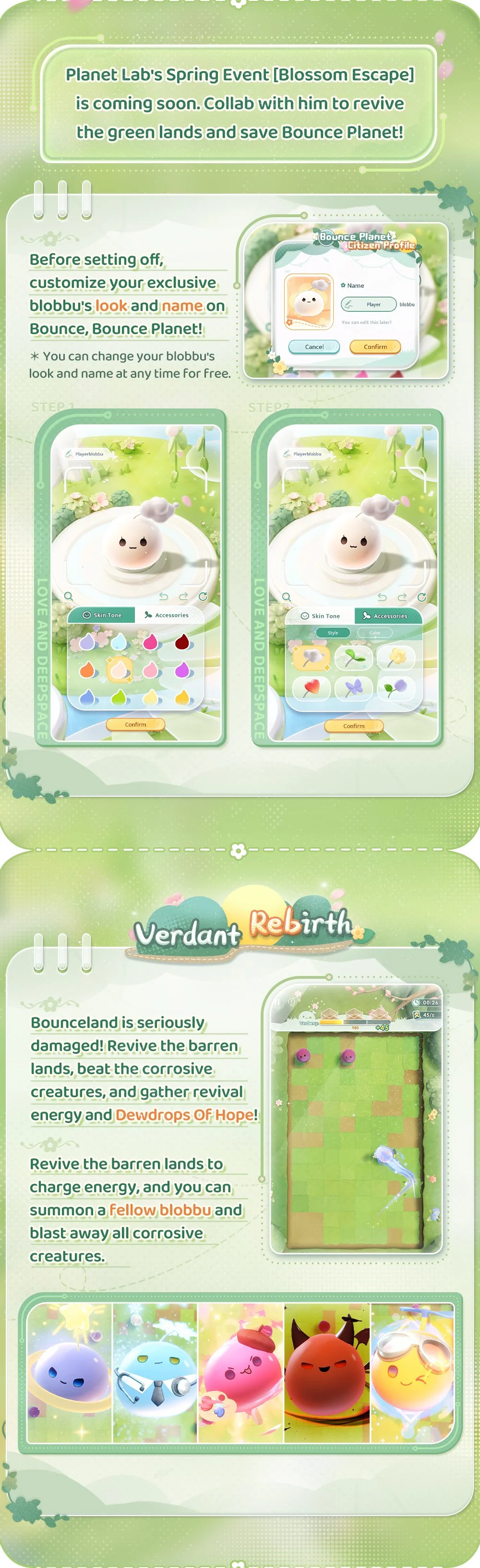 Bounceland is seriously damaged! Revive the barren lands, and gather revival energy and Dewdrops Of Hope!