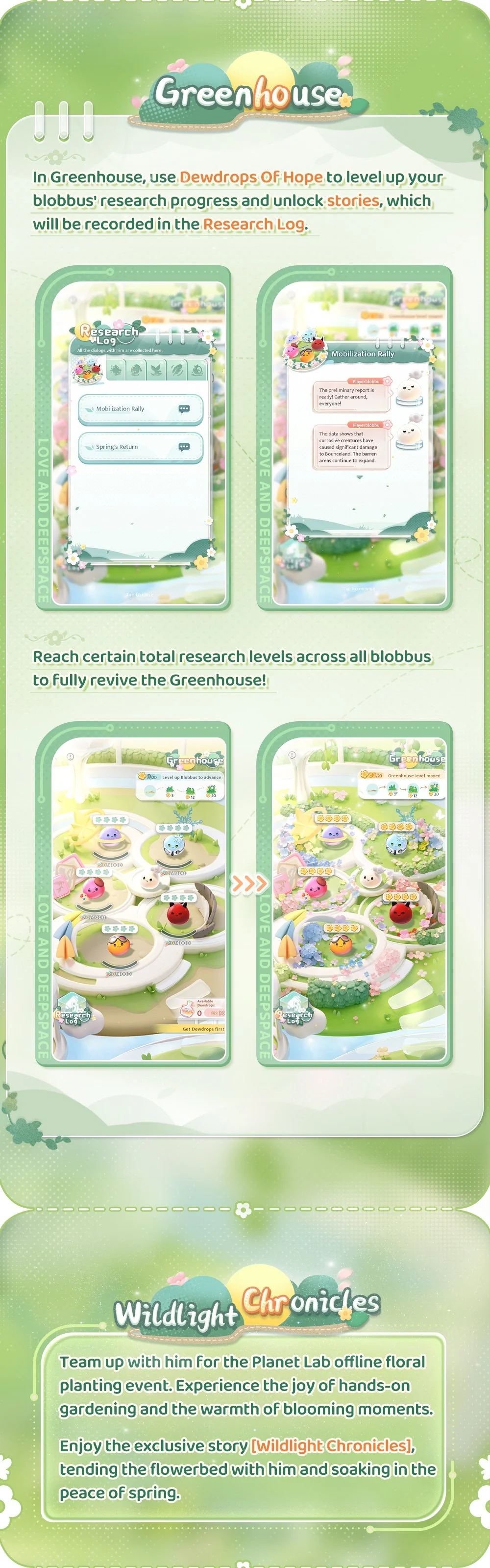 In Greenhouse, use Dewdrops Of Hope to level up your blobbus' research progress and unlock stories.