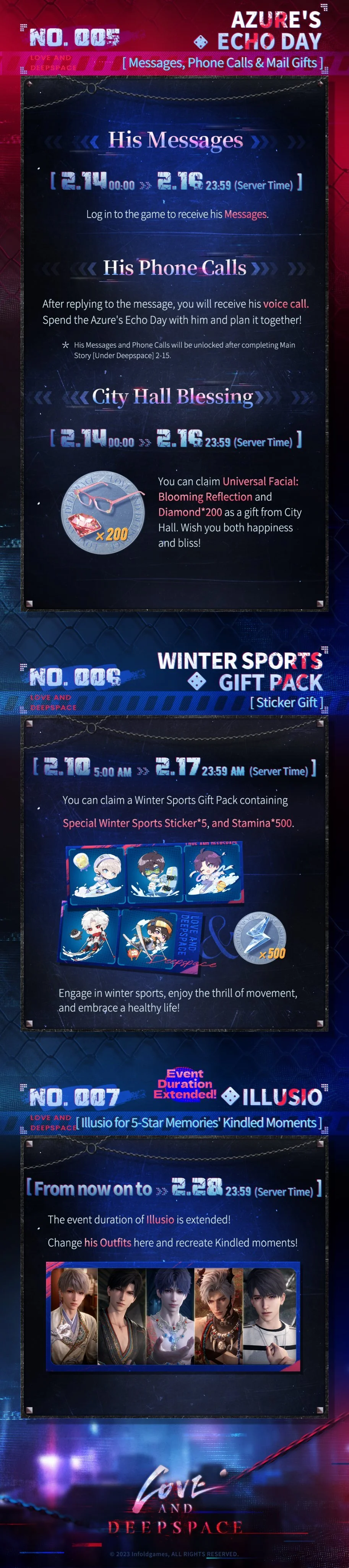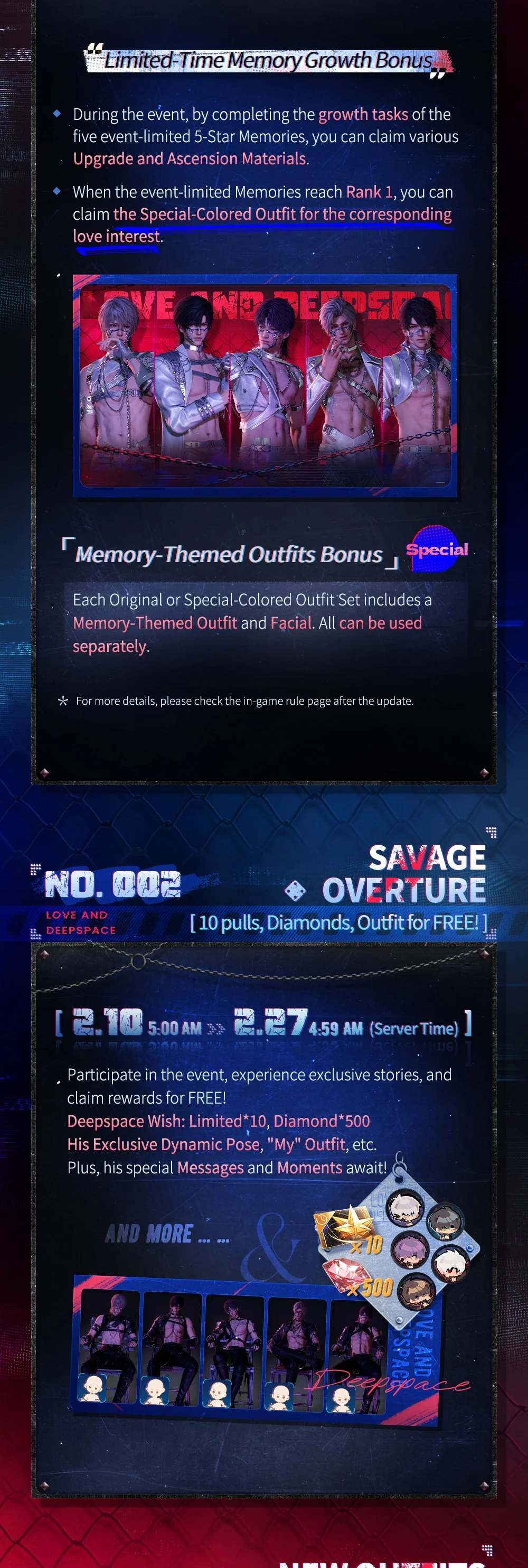 Participate in the event, enjoy the exclusive stories, and claim [Deepspace Wish: Limited*10], [Diamond*500], His Exclusive Dynamic Portrait Pose*5, "My" Outfit, and other rewards for FREE! Plus, enjoy His special messages and moments!