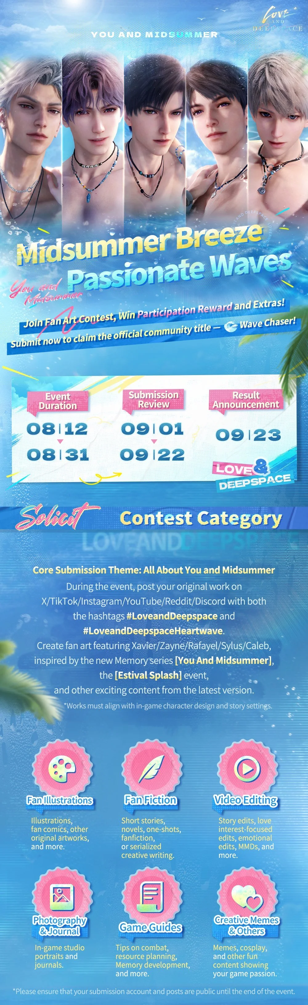 Love and Deepspace | [Midsummer Breeze Passionate Waves] Fan Art Contest